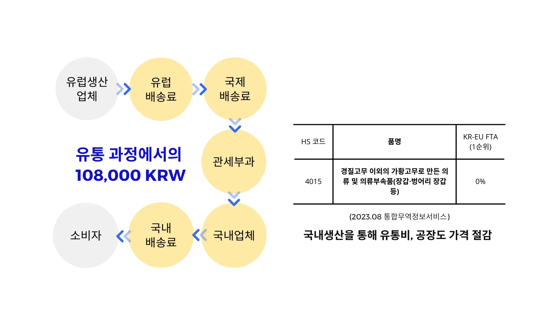 재활 보조장갑을 국내에서 제작한다면, 재활보조장갑의 성능을 유지하면서 소비자가를 낮출 수 있을 것이라고 분석했어요.
