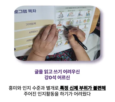 1) 어르신의 인지 활동에 대한 낮은 집중도와