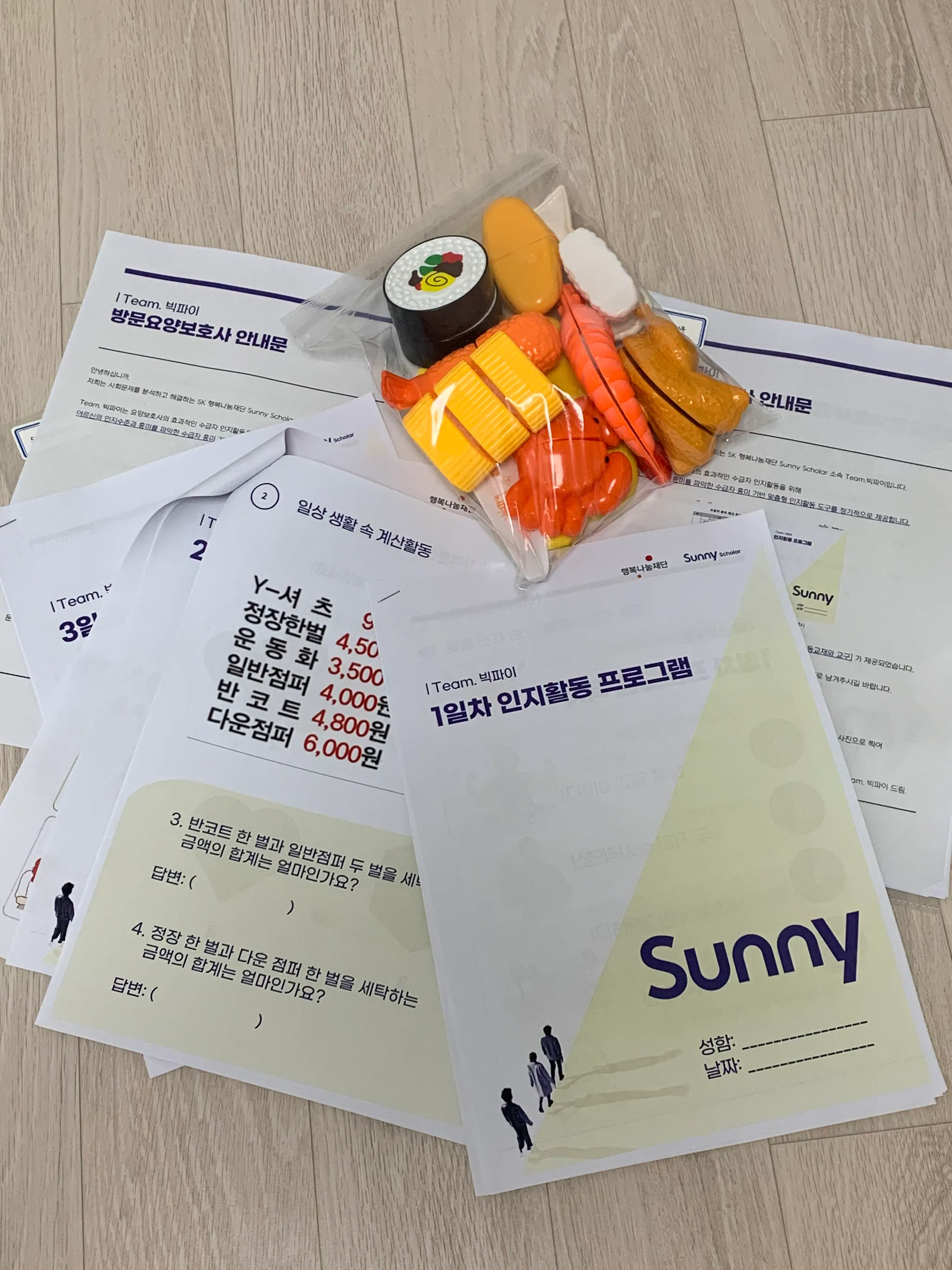 맞춤 인지활동 프로그램을 기반으로 실제 빅파이 인지활동 학습지를 제작하고 해당 활동에 필요한 교구를 함께 제공합니다.