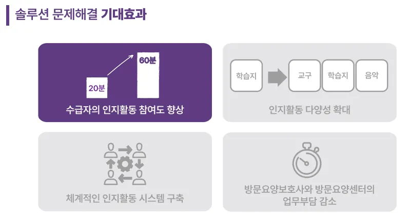 기존 40분 가량 진행되던 요양보호사의 인지활동 준비시간이 10분으로 감소