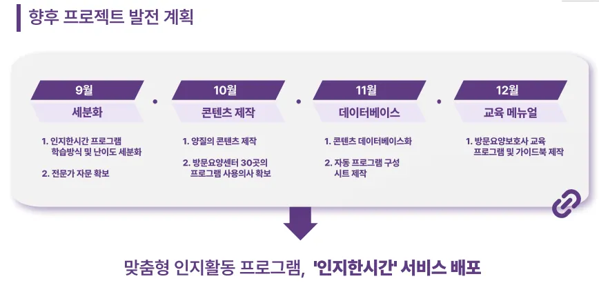 3) 방문요양서비스 날짜에 맞춘 프로그램 구독서비스를 제공을 통해 인지활동 체계성을 높인다.