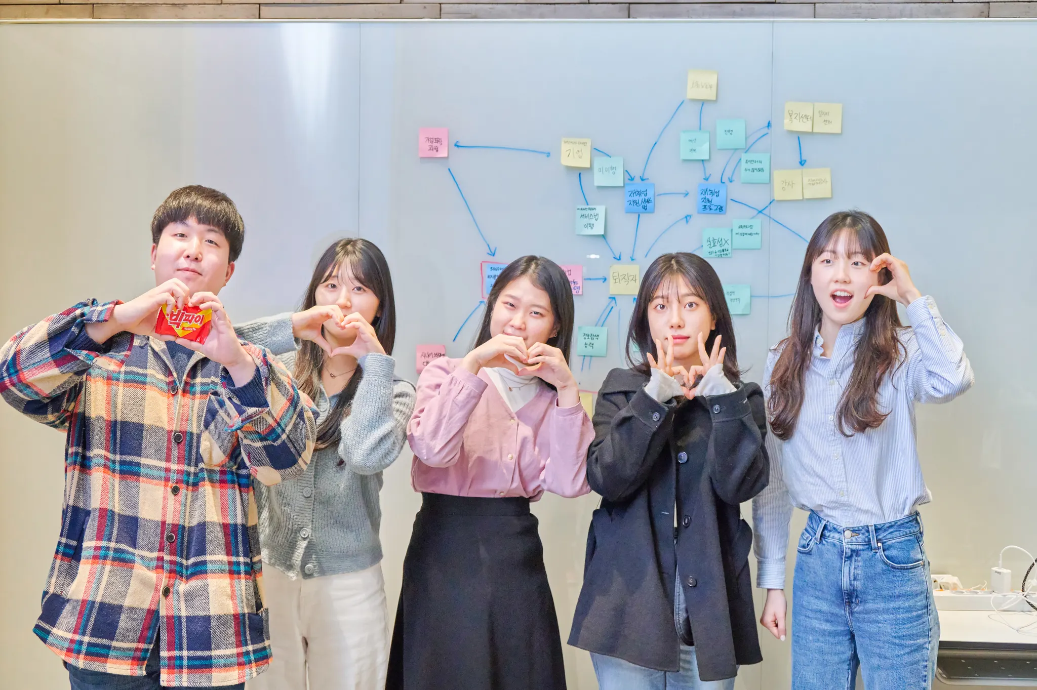 ‘사회문제’는 한 가지 원인으로 발생하는 것이 아니라 사회의 여러가지 복잡한 시스템 속에서 서로 영향을 주고 받는다는 것을 경험적으로 더 알 수 있었습니다. 각 요소들의 상관관계와 인과관계를 명확하게 구분해보면서 무엇이 진짜 문제의 원인인지 차근차근 찾아나갈 수 있는 경험을 해볼 수 있었습니다. 흐릿하게 보이던 문제의 형체들을 잘게 나누어 보았을 때 어떤 지점에 개입하면 좋을지 고민해보면서 문제를 진짜 해결하는 방법이 무엇인지 알 수 있었습니다. 문헌 조사에서 알 수 없는 정보들을 찾기 위해 현장에서 문제를 관찰하며 현장의 중요성을 다시금 깨달을 수 있었습니다. 다른 팀들과는 달리 주제를 바꾸게 되면서 짧은 시간 안에 여러가지 문제를 탐구하게 되었는데, 같은 프로세스를 반복하다보니 또 다른 문제를 분석하게 되더라도 하면 된다는 용기를 많이 얻어간 것 같습니다. 무엇보다 지치고 힘들 순간에 절대 포기하지 않고 앞으로 계속 나아가는 팀원들을 보며 모두가 있었기에 가능했던 하나의 ‘팀’이라는 기억을 얻게 되어 감사합니다. 진짜 변화의 시작은 하고자 하는 의지에 달려있고, 그 의지가 지속가능하기 위해서는 무엇보다도 함께하는 사람들과의 적극적인 소통, 열린 마음들이 중요하다는 좋은 경험을 한 것 같습니다.