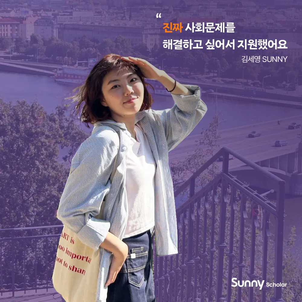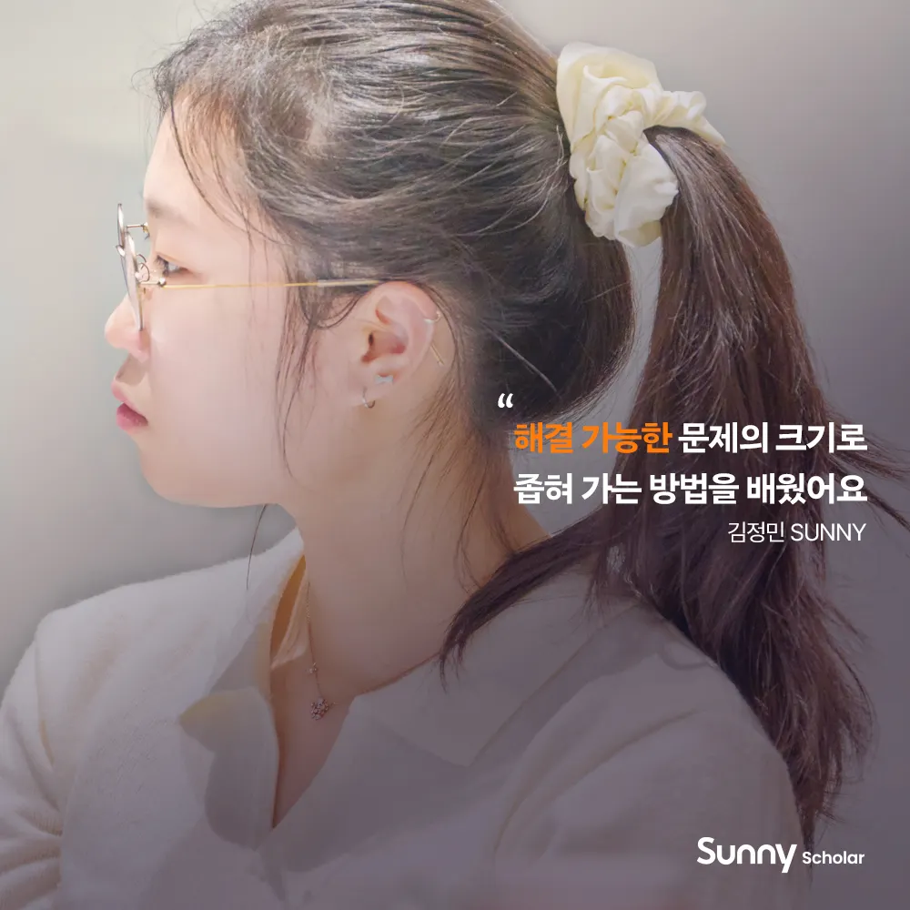 Sunny Scholar는 대학생들이 해결 가능한 크기로 '문제 정의' 하여, 사회문제 해결에 주체적으로 나설 수 있도록 8개월간 체계적인 교육과 밀도 높은 현장을 제공하는 SK행복나눔재단의 대표 청년 인재 육성 프로그램입니다.