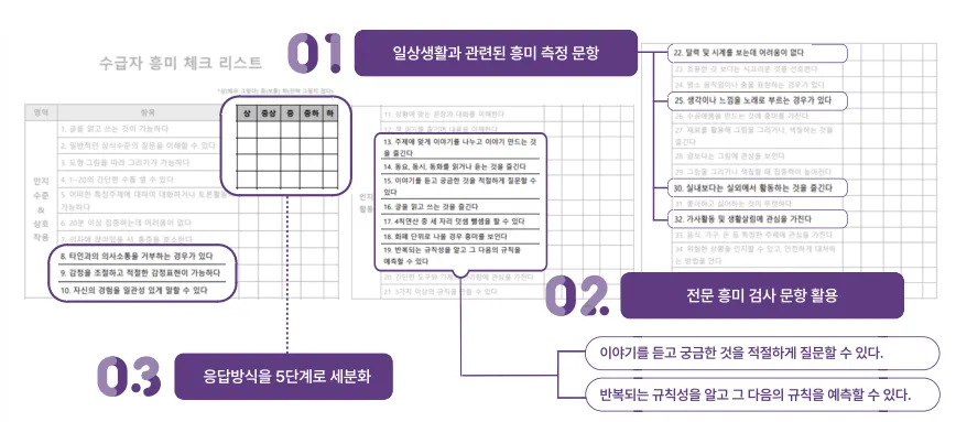 홀랜드 흥미검사 분류를 기준으로 보다 구체적인 질문지 작성 및 일상생활과 관련된 흥미 측정 문항 위주의 구성