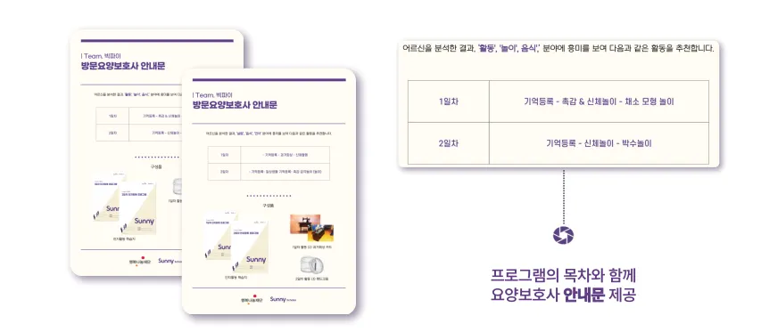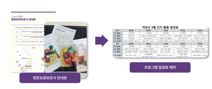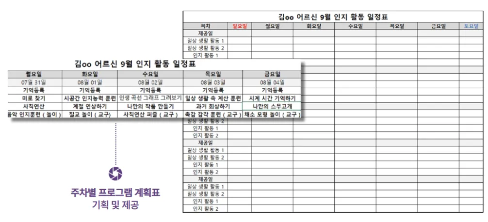 더욱 체계적인 프로그램 진행과 요양보호사 및 방문요양센터의 업무 부담 감소를 위해 프로그램 일정표 제작 및 제공