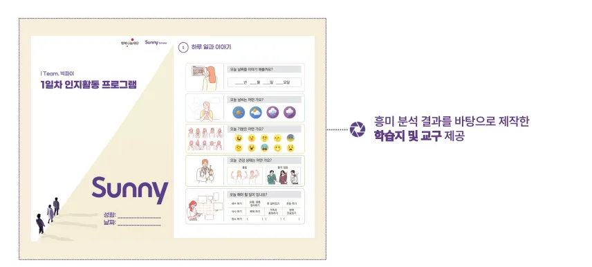 자료조사, 인터뷰, 근무현장 등 다양한 루트를 통해 확보한 어르신의 인지활동에 대한 흥미를 기반으로 흥미분류