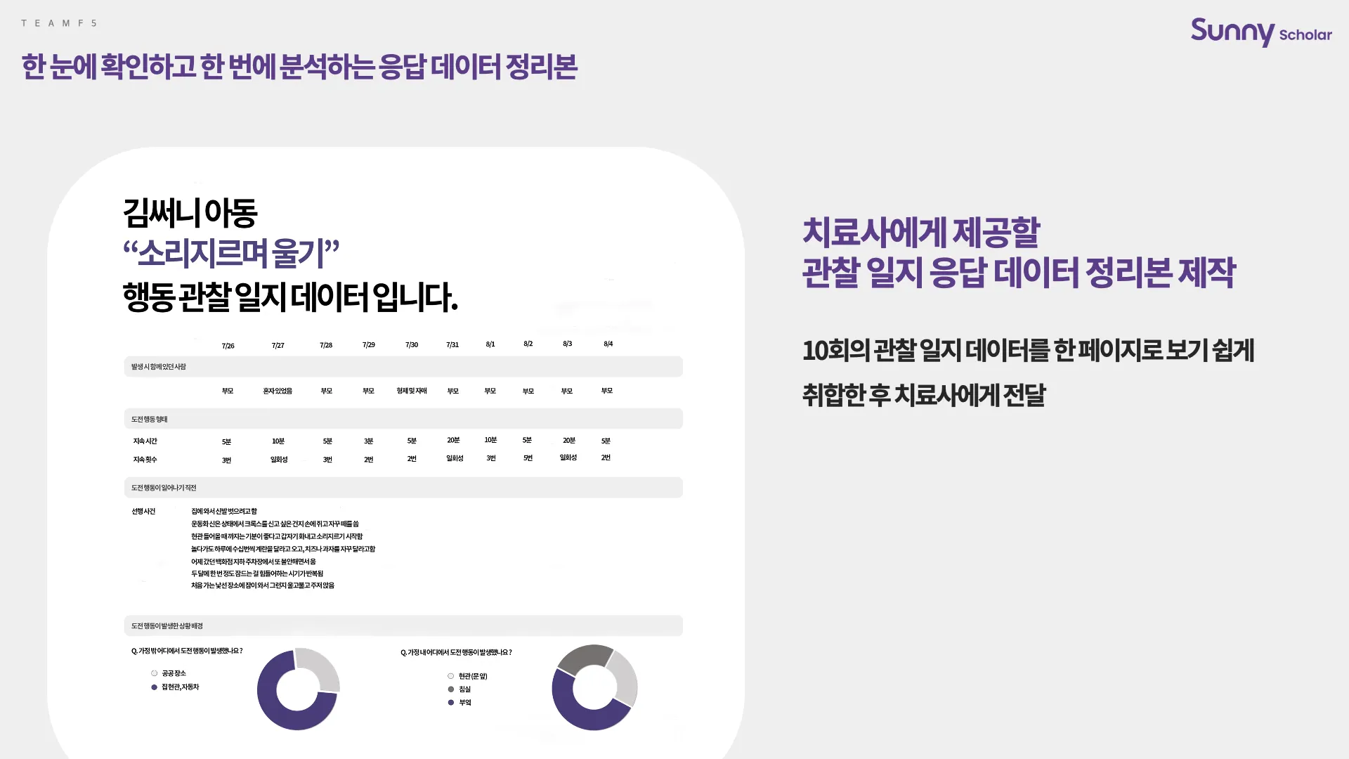 부모가 작성한 관찰 데이터를 바탕으로 치료사를 연결해 아동의 특성에 맞는 행동기능 파악을 돕고,