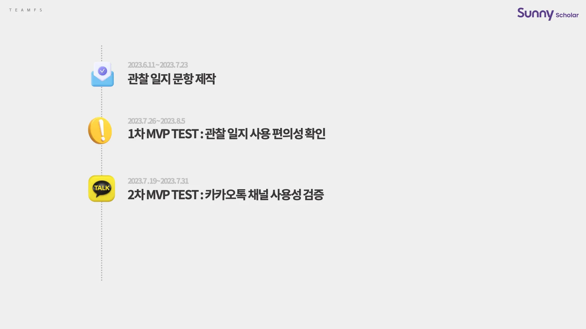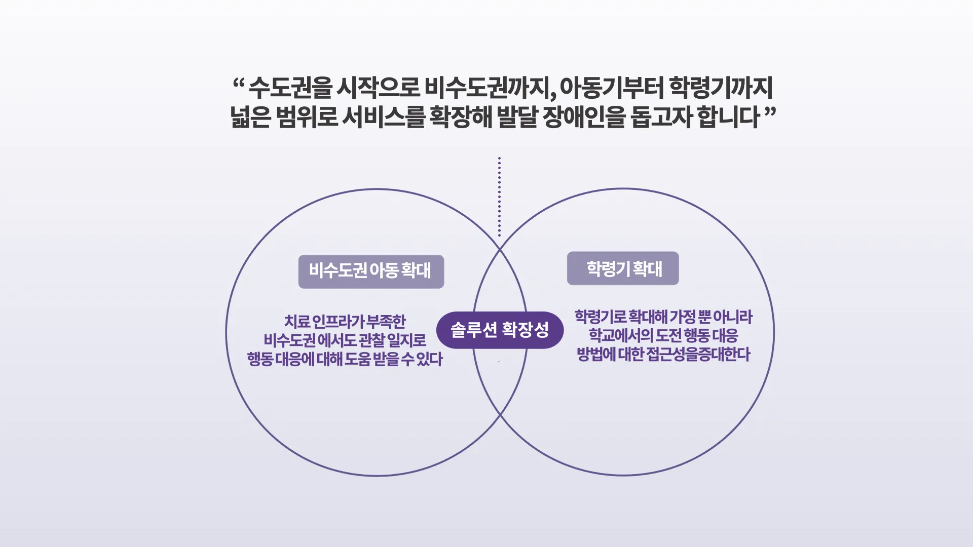 그러나 MVP 테스트 과정에서 이러한 좁은 범위의 타겟과 솔루션이 현실적인 제약으로 작용했습니다. 폐쇄적인 성향의 발달장애아동 커뮤니티에 더해 좁은 범위의 타깃은 MVP 유저 테스터 모집을 어렵게 했습니다. 더불어 MVP 테스트 참가자들과 관련 전문가들을 통해 도전행동 원인 파악이 좋은 방향성이지만, 더욱 효과적인 솔루션을 위해서는 추가적인 솔루션에 대한 논의가 필요하다는 것을 확인했습니다. 추가로 현장 인터뷰 단계에서 발달장애아동 부모가 솔루션을 통해 얻고자 하는 것이 ‘행동 중재’라는 것을 발견했습니다.