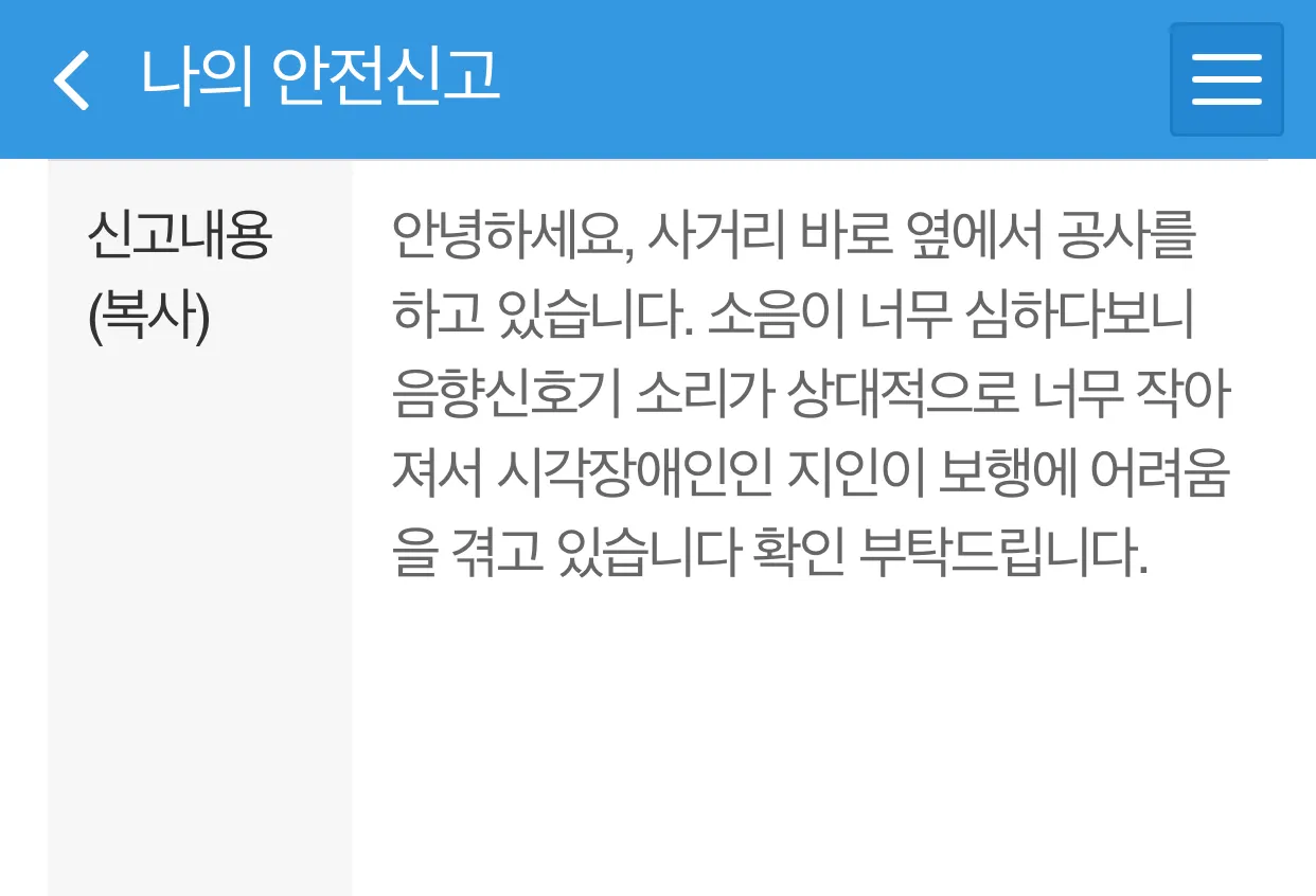 보행 중 겪는 불편함을 표출할 수 있는 창구인 안전신문고 역시 시각장애인이 이용하기에는 많은 문제가 있었어요