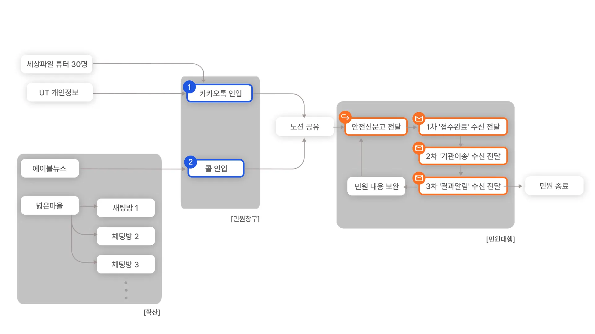 오픈채팅방과 인바운드콜이라는 2가지의 민원 접수 과정을 축소한 파일럿 프로그램을 빠르게 계획하고 실행했어요.